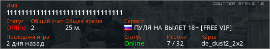 Последний раз был в сети 2 дня назад Игрок с таким ником замечен на 31 сервере