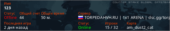 Играет на Counter Strike Global Offensive сервере. Страна: РоссияПервый раз замечен 17:56 26.03.2026