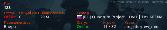 Играет на Counter Strike Global Offensive сервере. Страна: РоссияПервый раз замечен 20:26 23.03.2026