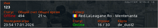 Играет на Counter Strike 1.6 сервере. Страна: РумынияПервый раз замечен 00:58 25.06.2022