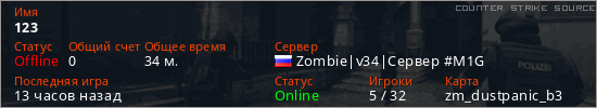 Последний раз был в сети 10 часов назад Игрок с таким ником замечен на 80 серверах