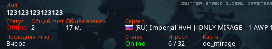 Играет на Counter Strike Global Offensive сервере. Страна: РоссияПервый раз замечен 16:37 05.12.2025