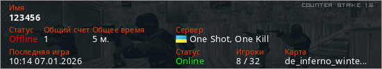 Играет на Counter Strike 1.6 сервере. Страна: УкраинаПервый раз замечен 10:05 07.01.2026