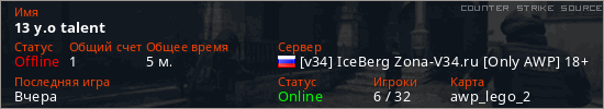 Последний раз был в сети Вчера Игрок с таким ником замечен на 12 серверах