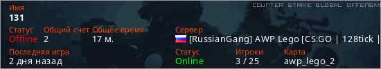 Играет на Counter Strike Global Offensive сервере. Страна: РоссияПервый раз замечен 00:18 14.02.2026
