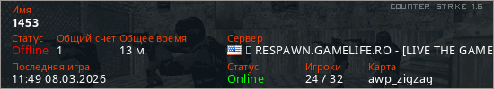 Играет на Counter Strike 1.6 сервере. Страна: СШАПервый раз замечен 14:47 06.03.2026