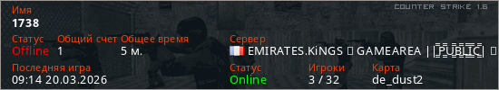 Играет на Counter Strike 1.6 сервере. Страна: ФранцияПервый раз замечен 07:15 20.03.2026