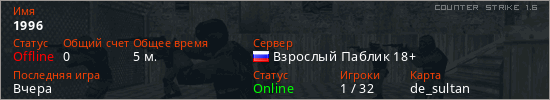 Последний раз был в сети Вчера Игрок с таким ником замечен на 20 серверах