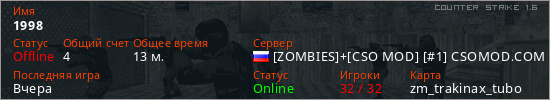 Последний раз был в сети Вчера Игрок с таким ником замечен на 25 серверах