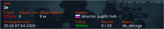 Играет на Counter Strike Global Offensive сервере. Страна: РоссияПервый раз замечен 19:14 07.04.2026