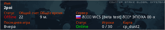 Играет на Counter Strike Global Offensive сервере. Страна: РоссияПервый раз замечен 19:01 06.03.2026