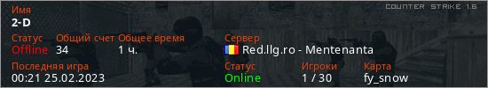 Играет на Counter Strike 1.6 сервере. Страна: РумынияПервый раз замечен 23:15 24.02.2023