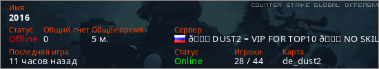 Играет на Counter Strike Global Offensive сервере. Страна: РоссияПервый раз замечен 04:36 07.03.2026