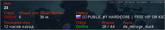 Играет на Counter Strike Global Offensive сервере. Страна: РоссияПервый раз замечен 19:49 24.01.2025
