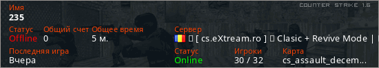 Играет на Counter Strike 1.6 сервере. Страна: РумынияПервый раз замечен 12:39 03.02.2026