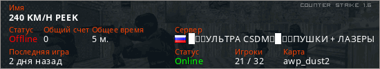 Последний раз был в сети 2 дня назад Игрок с таким ником замечен на 3 серверах