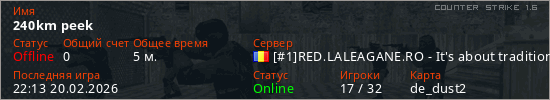 Играет на Counter Strike 1.6 сервере. Страна: РумынияПервый раз замечен 22:11 20.02.2026