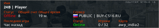Последний раз был в сети Час назад Игрок с таким ником замечен на 32 серверах