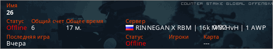 Играет на Counter Strike Global Offensive сервере. Страна: РоссияПервый раз замечен 20:15 11.02.2026