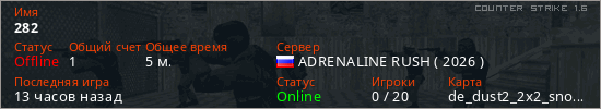 Играет на Counter Strike 1.6 сервере. Страна: РоссияПервый раз замечен 14:50 23.01.2026