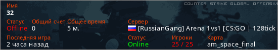 Последний раз был в сети Час назад Игрок с таким ником замечен на 35 серверах