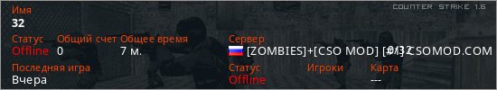 Последний раз был в сети Вчера Игрок с таким ником замечен на 35 серверах