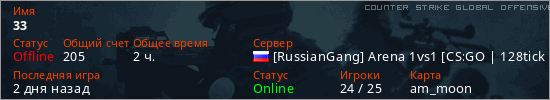 Играет на Counter Strike Global Offensive сервере. Страна: РоссияПервый раз замечен 13:41 11.06.2025