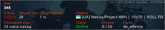 Играет на Counter Strike Global Offensive сервере. Страна: УкраинаПервый раз замечен 21:27 14.03.2026
