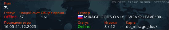 Играет на Counter Strike Global Offensive сервере. Страна: РоссияПервый раз замечен 04:15 01.02.2025