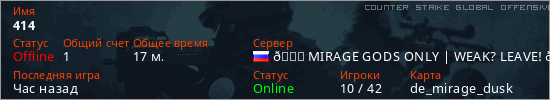 Играет на Counter Strike Global Offensive сервере. Страна: РоссияПервый раз замечен 01:20 01.11.2025
