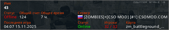 Последний раз был в сети 04:07 15.11.2025 Игрок с таким ником замечен на 31 сервере