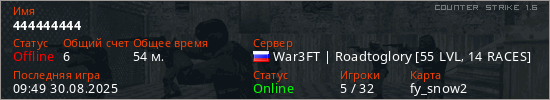 Играет на Counter Strike 1.6 сервере. Страна: РоссияПервый раз замечен 19:47 20.08.2025