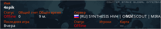 Играет на Counter Strike Global Offensive сервере. Страна: РоссияПервый раз замечен 08:58 07.03.2026