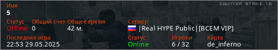 Играет на Counter Strike 1.6 сервере. Страна: РоссияПервый раз замечен 13:15 25.12.2024