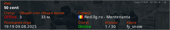 Играет на Counter Strike 1.6 сервере. Страна: РумынияПервый раз замечен 15:24 13.06.2025