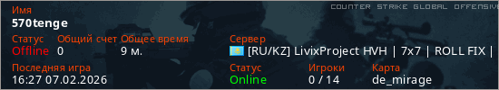 Играет на Counter Strike Global Offensive сервере. Страна: КазахстанПервый раз замечен 17:37 06.02.2026