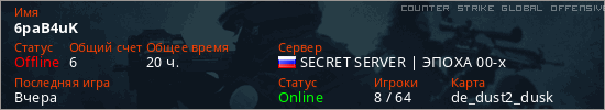 Последний раз был в сети Вчера Игрок с таким ником замечен на 5 серверах