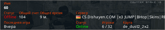 Последний раз был в сети Вчера Игрок с таким ником замечен на 14 серверах