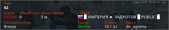 Последний раз был в сети Вчера Игрок с таким ником замечен на 25 серверах