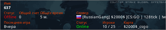 Играет на Counter Strike Global Offensive сервере. Страна: РоссияПервый раз замечен 16:52 11.12.2025