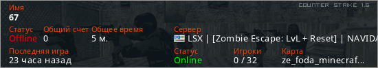 Последний раз был в сети 21 час назад Игрок с таким ником замечен на 51 сервере