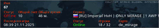Играет на Counter Strike Global Offensive сервере. Страна: РоссияПервый раз замечен 13:15 02.10.2025