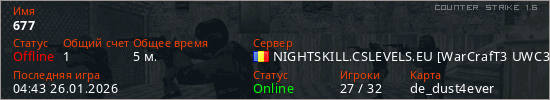 Играет на Counter Strike 1.6 сервере. Страна: РумынияПервый раз замечен 04:35 26.01.2026