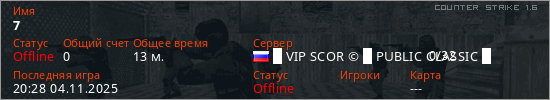 Играет на Counter Strike 1.6 сервере. Страна: РоссияПервый раз замечен 15:52 22.09.2025