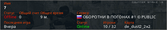 Последний раз был в сети Вчера Игрок с таким ником замечен на 55 серверах
