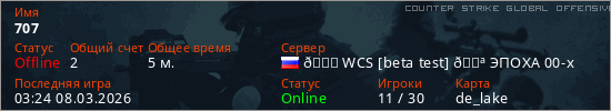 Играет на Counter Strike Global Offensive сервере. Страна: РоссияПервый раз замечен 01:25 08.03.2026