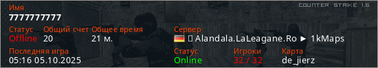 Последний раз был в сети 05:16 05.10.2025 Игрок с таким ником замечен на 25 серверах