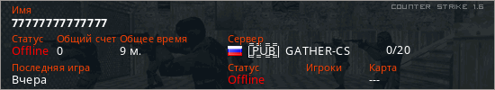Последний раз был в сети Вчера Игрок с таким ником замечен на 20 серверах