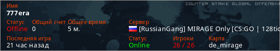 Последний раз был в сети 19 часов назад Игрок с таким ником замечен на 3 серверах