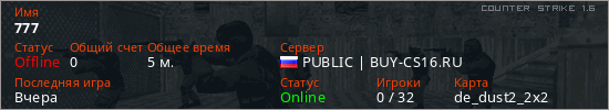 Последний раз был в сети Вчера Игрок с таким ником замечен на 78 серверах